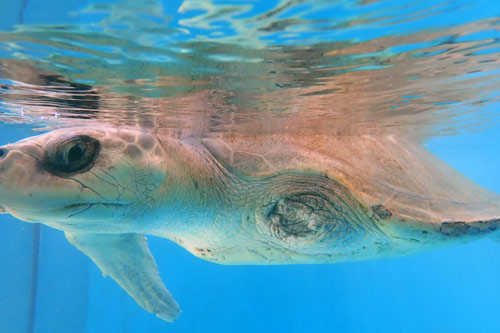 Naast de missende flipper heeft Azura ook lucht tussen haar lichaam en haar schild. Dit is hoogstwaarschijnlijk gebeurt toen ze vast zat in de zwervende visnetten. Door dit lucht en haar missende flipper, lukt het haar niet om in water te duiken naar voedsel. Om Azura weer te leren duiken en haar eigen voedsel te vangen, gaat het ORP team af en toe met haar zwemmen in de ‘echte’ oceaan. Zo leert ze beetje bij beetje weer te overleven in haar natuurlijke habitat.