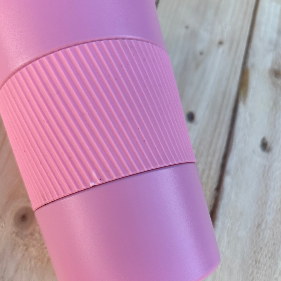 Let op: Deze koffiebeker bevat een beschadiging bij het rubber, bekijk de sfeerfoto's en de product specificaties goed (er zit geen garantie op deze coffeemug). Tweede Kans flessen worden zonder beschermhoesje geleverd en in een kartonnen doosje.